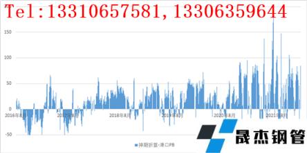 另外,我們再來看一下,港口的PB粉價格和麥克粉價格的價差,這兩個品種在含鐵量上相差不多,同時就是小指標含量有一定的差異,所以之前一直維持一個穩定的價差,但是現在這個價差也出現了明顯的擴張,這表明,在同樣差不多的品質里面,PB粉相對來說更貴了。
