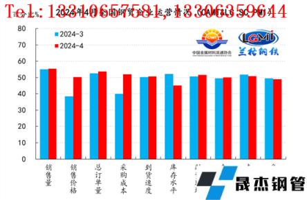中國金屬材料流通協會、網聯合發布的2024年4月份中金協&網·厚壁無縫鋼管流通PMI指數為51.1%,較上月下降0.3個百分點,在擴張區間內略有回落。從分類指數看,構成中金協&網·厚壁無縫鋼管流通PMI的10個分類指數7升3降,其中銷售量、銷售價格、總訂單量、采購成本、到貨速度、融資環境和企業雇員7項指數上升,庫存水平、走勢判斷和采購意愿3項指數下降。
