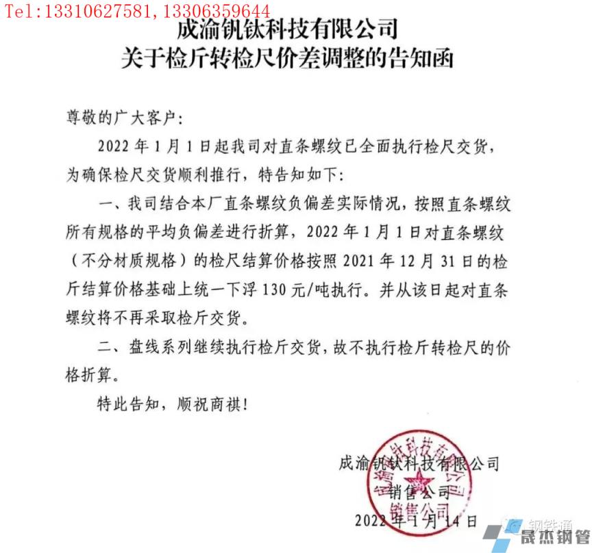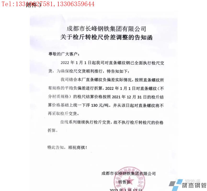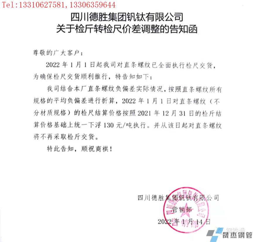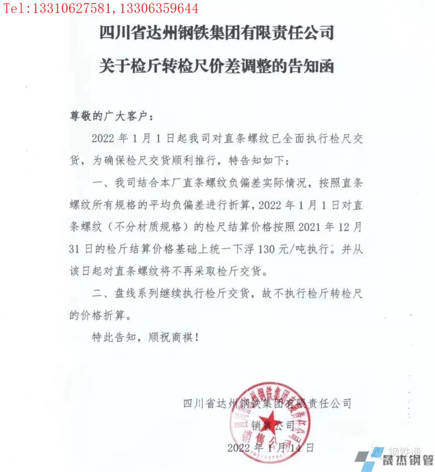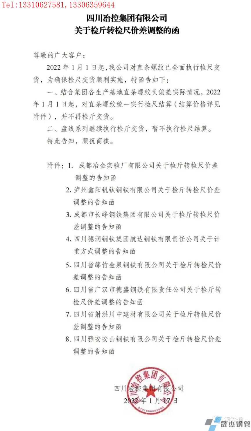 免責聲明:本網(wǎng)站(山東聊城晟杰無縫鋼管廠www.ginginbaby.com)刊載的“四川多家鋼企發(fā)布檢斤轉檢尺價差調整通知”等均源于網(wǎng)絡,版權歸原作者所有,且僅代表原作者觀點,本文所載信息僅供參考。轉載僅為學習與交流之目的,如無意中侵犯您的合法權益,請及時聯(lián)系刪除。本網(wǎng)站刊登此篇文章并不意味著本站贊同其觀點或證實其內容的真實性,我們不對其科學性、嚴肅性等作任何形式的保證。如果侵犯了您的版權,請盡快聯(lián)系我們予以撤銷,謝謝合作!