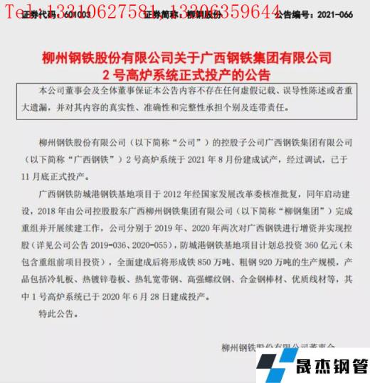 柳鋼股份12月7日晚間公告,控股子公司廣西鋼鐵集團有限公司2號高爐系統于2021年8月份建成試產,經過調試,已于11月底正式投產。