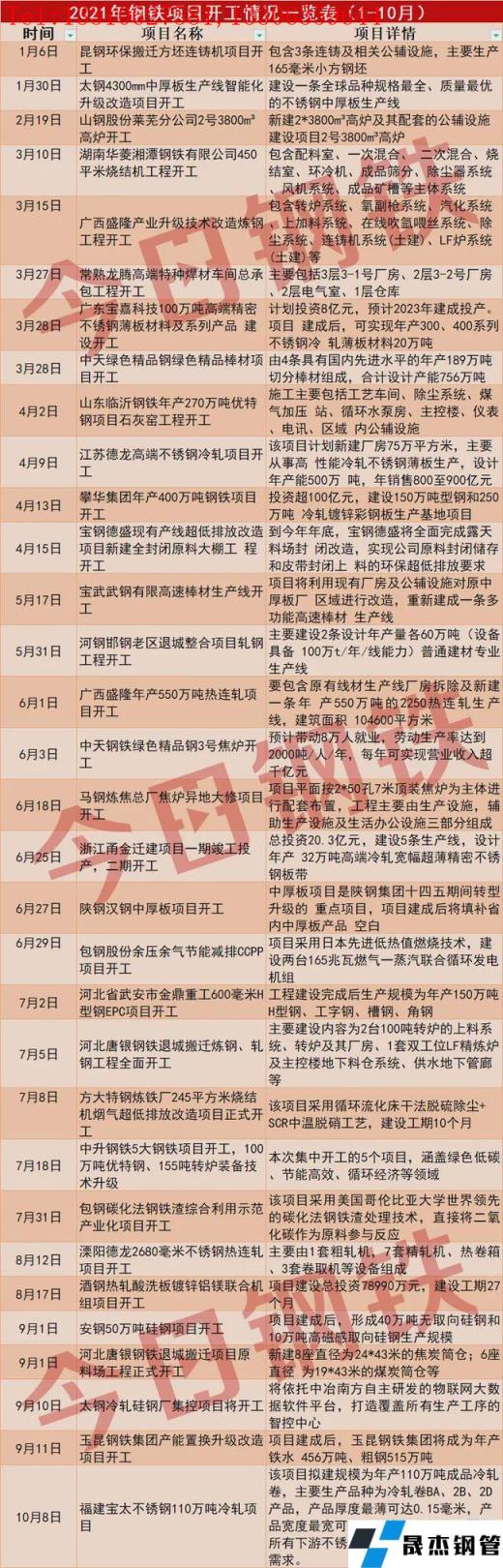 據【今日鋼鐵】不完全統計,截至12月29日,包括以上8個項目在內,已有40個鋼鐵項目陸續開工,現將1至10月份已開工項目進行如下整理: