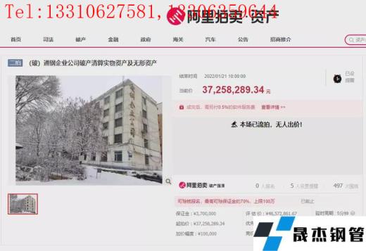 近日,阿里拍賣平臺發布通鋼企業名下房屋建筑物、構筑物及其他輔助設施等資產的拍賣信息。本次競拍時間為1月20日是繼1月1日后的第二次拍賣,起拍價格也由之前的4657.28萬元降至3725.82萬元。