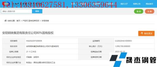 免責聲明:本網站(山東聊城晟杰無縫鋼管廠www.ginginbaby.com)刊載的“混改倒計時!安鋼集團110億掛牌轉讓!二十余鋼企有接手資格?”等均源于網絡,版權歸原作者所有,且僅代表原作者觀點,本文所載信息僅供參考。轉載僅為學習與交流之目的,如無意中侵犯您的合法權益,請及時聯系刪除。本網站刊登此篇文章并不意味著本站贊同其觀點或證實其內容的真實性,我們不對其科學性、嚴肅性等作任何形式的保證。如果侵犯了您的版權,請盡快聯系我們予以撤銷,謝謝合作!