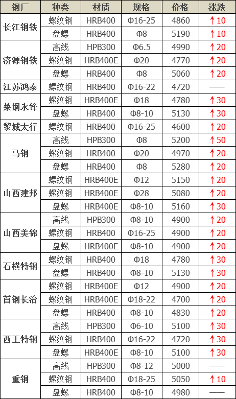 今型價窄幅上行,幅度20-100。昨成本端支撐上移,期螺持紅運轉,廠商盼漲意愿強。但下游需求持續縮減,成交淡。短期型價將趨穩觀望;