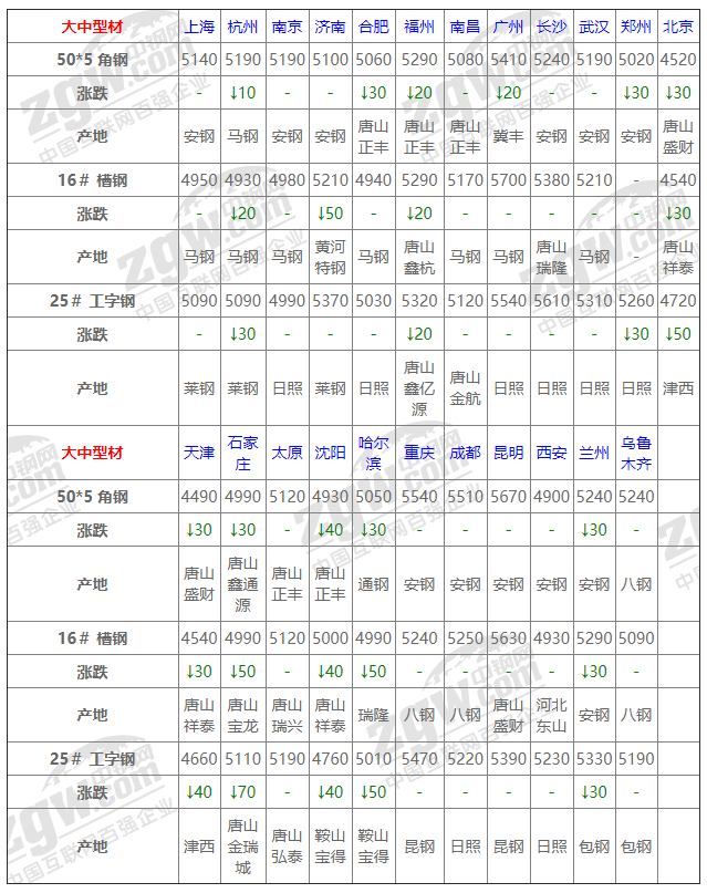 全國23個主要市場50*5 角鋼平均價格5135元/噸,較上個交易日下調(diào)13元/噸。