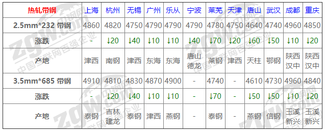 全國12個主要市場2.5mm*232 帶鋼平均價格4793元/噸,較上個交易日下調(diào)30元/噸。