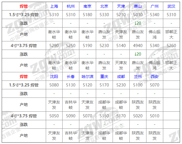 全國15個主要市場1.5寸*3.25 焊管平均價格5196元/噸,較上個交易日下調(diào)1元/噸。