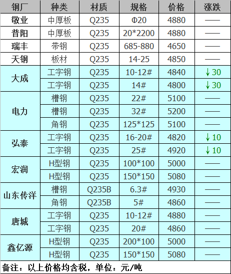 1月18日徐州中新鋼鐵廢鋼下調(diào)50元:矽鋼片3450模具鋼3550,鋼筋切粒3570、沖子3570,鋼筋頭、工廠廢料、支架3490,統(tǒng)料廢鋼、汽車拆件、模板3350,鍛打、彈簧板3470、鋼圈3430工角鋼3450。帶油廢鋼拒收。發(fā)現(xiàn)壓力容器.密封管重罰。