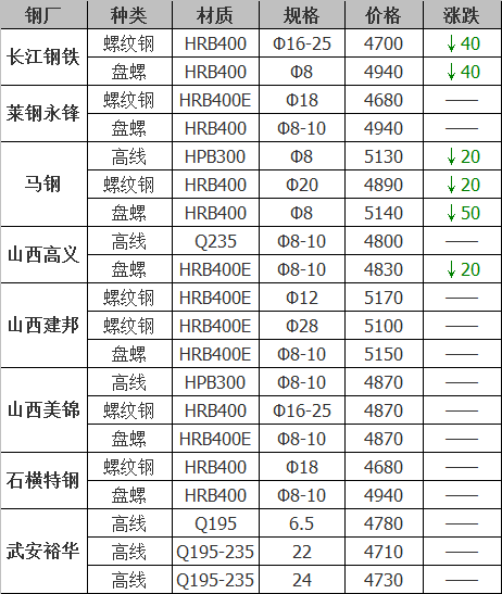 下調(diào)3家,占比33.3%,調(diào)價幅度20-40元/噸;