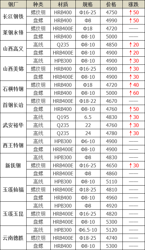 上調3家,占比27.3%,調價幅度10-20元/噸;