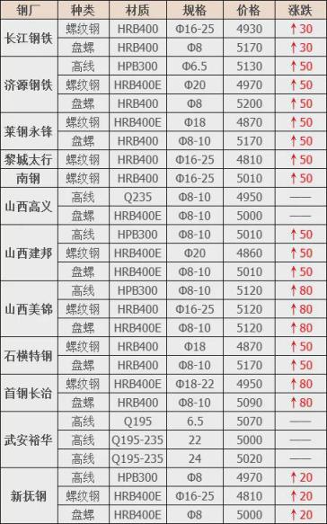 上調(diào)12家,占比54.5%,調(diào)價幅度20-80元/噸,