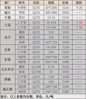 9日山東閩源廢鋼漲30:沖子3650-3680,沖子厚壁無縫鋼管頭混裝3640,鋼筋切頭、厚壁無縫鋼管頭、模具鋼、坯頭、圓鋼頭3680,8厚以上鋼板料3680,6厚以上鋼板料3630,毛邊3530,優(yōu)重3540-3650,重廢8厚上3500,重廢6厚以上3440,破碎剪切料3150,不含稅。單位:元/噸。
