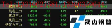 今日螺紋主力期貨跌62,收報4843,跌幅1.26%;熱卷主力跌61,收報4980,跌幅1.21%;焦煤主力跌93,收報2320,跌幅3.85%;焦炭主力跌46.5,收報3026,跌幅1.51%;鐵礦石主力跌49,收報781,跌幅5.9%。