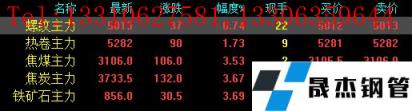 今日螺紋主力期貨漲37,收?qǐng)?bào)5013,漲幅0.74%;熱卷主力漲90,收?qǐng)?bào)5282,漲幅1.73%;焦煤主力漲106,收?qǐng)?bào)3106,漲3.53%;焦炭主力漲132,收?qǐng)?bào)3733.5,漲幅3.67%;鐵礦石主力漲30.5,收?qǐng)?bào)856,漲幅3.69%。