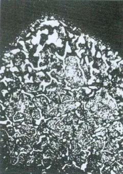 淬火加熱的目的是使工件在淬火過程中完成組織轉(zhuǎn)變。為此,必須加熱到適當溫度并有足夠保溫時間。加熱溫度偏低和保溫時間不足使得原珠光體組織未能完全轉(zhuǎn)變?yōu)閵W氏體和轉(zhuǎn)變的奧氏體成分不均勻,淬火后得不到完全馬氏體組織,結(jié)果使工件淬火后形成軟點。 圖1 為T12鋼制造的手用絲錐因加熱不足形成的顯微組織:細針馬氏體+淬火托氏體+珠光體。性能上表現(xiàn)為硬度不均勻。