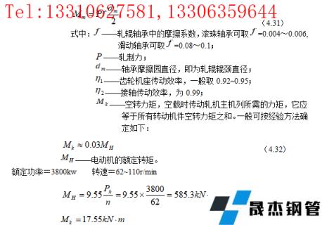 免責聲明:本網站(山東聊城晟杰無縫鋼管廠www.ginginbaby.com)刊載的“4.9 力能參數的計算(厚壁鋼管軋制)”等均源于網絡,版權歸原作者所有,且僅代表原作者觀點,本文所載信息僅供參考。轉載僅為學習與交流之目的,如無意中侵犯您的合法權益,請及時聯系刪除。本網站刊登此篇文章并不意味著本站贊同其觀點或證實其內容的真實性,我們不對其科學性、嚴肅性等作任何形式的保證。如果侵犯了您的版權,請盡快聯系我們予以撤銷,謝謝合作!