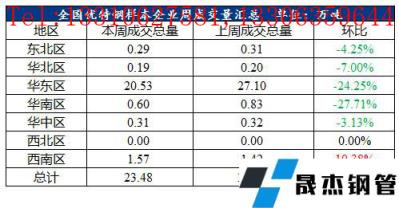 全國(guó)優(yōu)特鋼棒材樣本企業(yè)成交量23.48萬(wàn)噸,環(huán)比下降6.7萬(wàn)噸,降幅22.2%。
