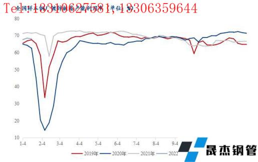 圖2:全國樣本無縫鋼管廠鍍鋅板卷產(chǎn)能利用率