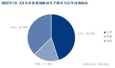 1、2022年1-3月的優(yōu)特鋼棒材生產(chǎn)情況與往年同期相比近一半處于正常水平,有37%的無(wú)縫鋼管廠產(chǎn)量不及去年同期。