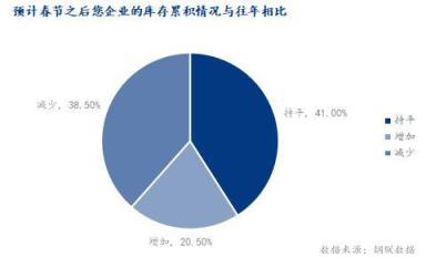 2、樣本企業(yè)春節(jié)前后,無(wú)縫鋼管廠庫(kù)存有40%與去年同期水平相當(dāng),另有40%較去年同期庫(kù)存下降,只有20%庫(kù)存同比上升。