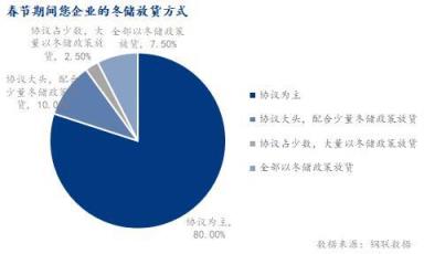 3、春節(jié)期間,超80%的無(wú)縫鋼管廠冬儲(chǔ)放貨方式以協(xié)議為主,少量協(xié)議與冬儲(chǔ)政策相結(jié)合。