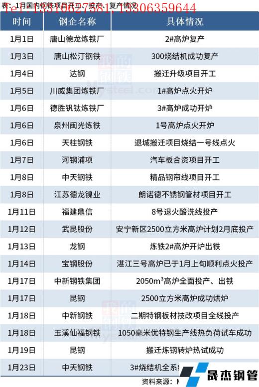 免責聲明:本網站(山東聊城晟杰無縫鋼管廠www.ginginbaby.com)刊載的“1月國內20個鋼鐵項目開工、投產和復產”等均源于網絡,版權歸原作者所有,且僅代表原作者觀點,本文所載信息僅供參考。轉載僅為學習與交流之目的,如無意中侵犯您的合法權益,請及時聯系刪除。本網站刊登此篇文章并不意味著本站贊同其觀點或證實其內容的真實性,我們不對其科學性、嚴肅性等作任何形式的保證。如果侵犯了您的版權,請盡快聯系我們予以撤銷,謝謝合作!