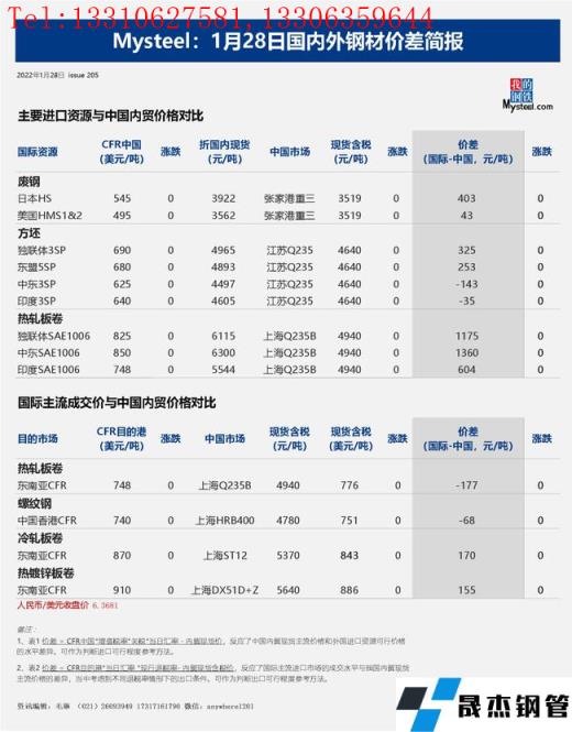 免責聲明:本網站(山東聊城晟杰無縫鋼管廠www.ginginbaby.com)刊載的“2022年01月28日日報:國內外鋼材_無縫鋼管價差匯總(2022.1.28)”等均源于網絡,版權歸原作者所有,且僅代表原作者觀點,本文所載信息僅供參考。轉載僅為學習與交流之目的,如無意中侵犯您的合法權益,請及時聯系刪除。本網站刊登此篇文章并不意味著本站贊同其觀點或證實其內容的真實性,我們不對其科學性、嚴肅性等作任何形式的保證。如果侵犯了您的版權,請盡快聯系我們予以撤銷,謝謝合作!