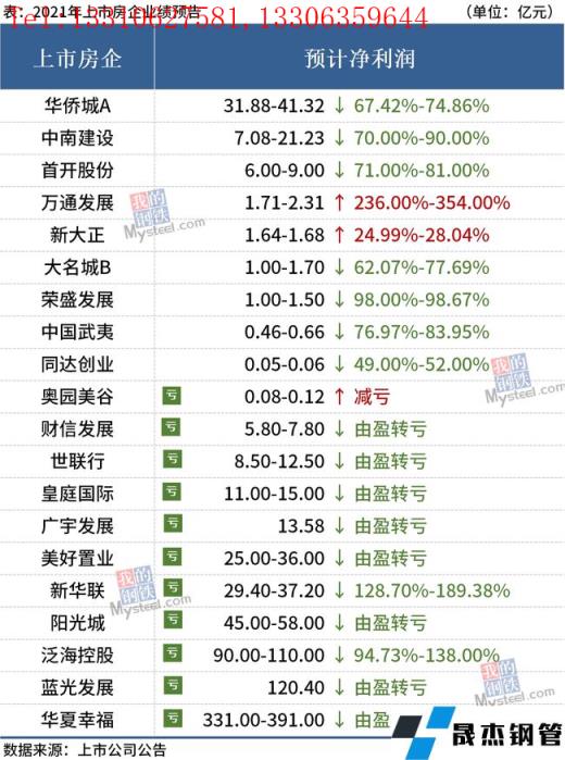 免責聲明:本網站(山東聊城晟杰無縫鋼管廠www.ginginbaby.com)刊載的“20家房企發布2021年業績預告,過半出現虧損”等均源于網絡,版權歸原作者所有,且僅代表原作者觀點,本文所載信息僅供參考。轉載僅為學習與交流之目的,如無意中侵犯您的合法權益,請及時聯系刪除。本網站刊登此篇文章并不意味著本站贊同其觀點或證實其內容的真實性,我們不對其科學性、嚴肅性等作任何形式的保證。如果侵犯了您的版權,請盡快聯系我們予以撤銷,謝謝合作!