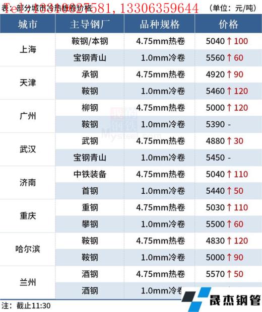 ◎樂從:7日早盤熱卷市場價格上漲120,4.75以上普柳燕5000-5010,2.75普5040-5190錳5190-5210。(單位:元/噸)