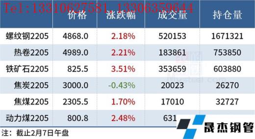 免責聲明:本網站(山東聊城晟杰無縫鋼管廠www.ginginbaby.com)刊載的“2022年02月07日午報:鋼價全線上漲,鐵礦石期貨漲逾3%”等均源于網絡,版權歸原作者所有,且僅代表原作者觀點,本文所載信息僅供參考。轉載僅為學習與交流之目的,如無意中侵犯您的合法權益,請及時聯系刪除。本網站刊登此篇文章并不意味著本站贊同其觀點或證實其內容的真實性,我們不對其科學性、嚴肅性等作任何形式的保證。如果侵犯了您的版權,請盡快聯系我們予以撤銷,謝謝合作!
