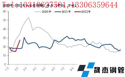 2月7日山東優(yōu)特?zé)o縫厚壁鋼管廠家棒材總庫存27.49萬噸,較節(jié)前增加12.86萬噸,增幅88%,較去年春節(jié)后庫存減少3萬噸。