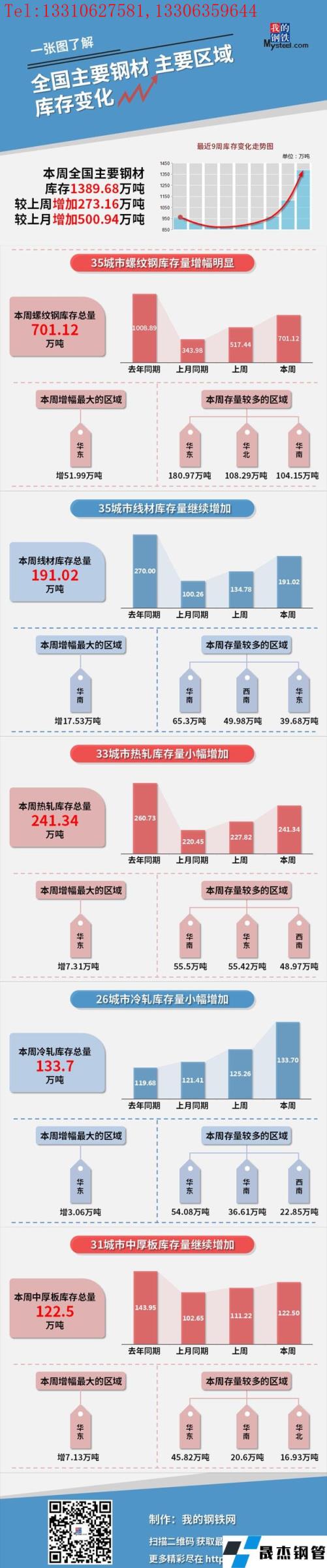 本周,全國主要厚壁無縫鋼管社會庫存1389.69萬噸,較上周增加273.16萬噸,較上月增加500.94萬噸;螺紋鋼庫存總量701.12萬噸。