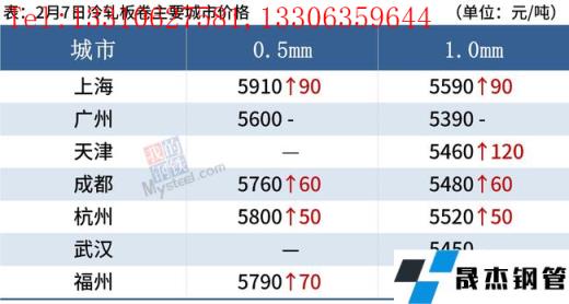 冷軋板卷:2月7日,全國24個主要城市1.0mm冷卷均價5525元/噸,較節前(1月30日)上漲57元/噸。據市場反饋,今日大部分鋼貿企業未全面復工,大部分陸續要8-10號陸續進入復工,當前市場暫無明顯成交,受原材料價格提漲,冷軋貿易商先提漲價格,市場呈有價無市狀態。基本面看,截止6號調研數據顯示,冷軋無縫厚壁鋼管廠家產能利用率79.10%,周環比減少2.31%;廠庫周環比增加7.16萬噸,社庫周環比增加8.45,月環比增加12.30萬噸,年同比增加14.03萬噸,基本面壓力尚可。預計8日全國冷軋板卷現貨價格多震蕩上調為主。