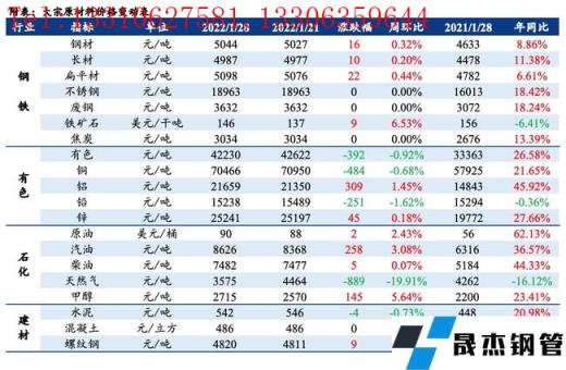 免責聲明:本網站(山東聊城晟杰無縫鋼管廠www.ginginbaby.com)刊載的“大宗原材料價格周報(1.24-1.28)”等均源于網絡,版權歸原作者所有,且僅代表原作者觀點,本文所載信息僅供參考。轉載僅為學習與交流之目的,如無意中侵犯您的合法權益,請及時聯系刪除。本網站刊登此篇文章并不意味著本站贊同其觀點或證實其內容的真實性,我們不對其科學性、嚴肅性等作任何形式的保證。如果侵犯了您的版權,請盡快聯系我們予以撤銷,謝謝合作!