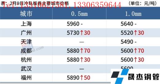 冷軋板卷:2月9日,全國24個主要城市1.0mm冷卷均價5594元/噸,較上個交易日上漲18元/噸。節后市場貿易商漲價意愿較強,連續兩日上漲之后,9日僅部分地區繼續補漲。據貿易商反饋,下游企業開工多滯后于貿易商,當下市場詢單問價的寥寥無幾,價格雖然大幅上行,但有空漲之勢。隨著黑色系期貨全線翻綠,午后部分市場價格開始回落。綜上所述,預計10日全國冷軋板卷市場價格或將震蕩運行。