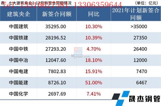 從各大央企簽單數(shù)據(jù)來看,截止2月11日,共有7家建筑央企公布其2021年新簽合同額情況。總體來看,這7家建筑央企1-12月同比均實(shí)現(xiàn)正增長(zhǎng),累計(jì)新簽合同總額超12萬億元,較去年同期(108812億元)增長(zhǎng)12%。