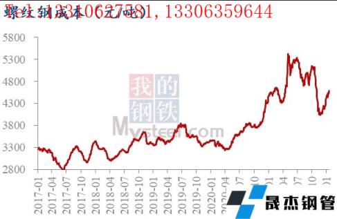 回顧2021年行情,厚壁無縫鋼管價(jià)格突破歷史新高,鋼價(jià)最大同比漲幅超100%,但厚壁無縫鋼管利潤(rùn)表現(xiàn)情況卻明顯低于鋼價(jià)表現(xiàn)。說明2021年高昂的厚壁無縫鋼管價(jià)格除了在限產(chǎn)背景下,厚壁無縫鋼管基本面本身偏好外,原材料成本的高位亦是去年高鋼價(jià)的重要支撐。據(jù)成本利潤(rùn)模型計(jì)算,2021年螺紋鋼年均成本為4737元/噸,較2020年同比上漲31%,是2021年鋼價(jià)的重要支撐。