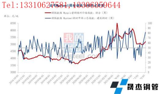 具體各品種指數來看,2月11日建筑厚壁無縫鋼管情緒指數為81.8,較1月21日回升21.23;熱軋板卷情緒指數為83.21,較1月21日回升21.86;冷軋板卷情緒指數為78.77,較1月21日回升31.62;中厚板情緒指數為93.42,較1月21日回升33.12;結構鋼情緒指數為74.08,較1月21日回升30.45;工業線材情緒指數為66.9,較1月21日回升3.03;鍍鋅板卷情緒指數為86.12,較1月21日回升31.32;焊接厚壁鋼管情緒指數為87.4,較1月21日回升18.53;無縫厚壁鋼管情緒指數為92.05,較1月21日回升9.66;帶鋼情緒指數為85.11,較1月21日回升21.62。