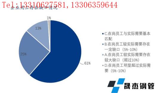 本次調研樣本企業中在崗員工數量較實際需要存在缺口的企業占比38%;在崗員工數量較實際需要基本匹配的占61%;在崗員工數量超過實際需要的占比1%。