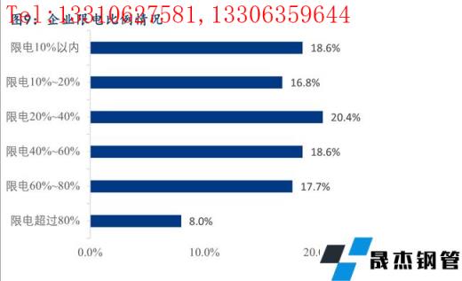 4、對于限電方面的調研結果顯示,22.0%的樣本企業明確表示目前存在限電的情況,限電的比例較為平均,35.4%的樣本企業限電比例在20%以內,38.9%的樣本企業限電比例在20%-60%,25.7%的樣本企業限電比例在60%以上。