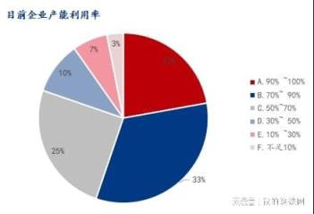 產(chǎn)能利用率在50%以上的占比80.27%,在50%以下的占比19.73%,企業(yè)整體產(chǎn)能利用率較高。