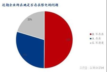 參與調(diào)研企業(yè)中,50.11%企業(yè)表示不存在限電情況,29.49%表示存在,20.40%表示不太清楚。
