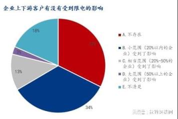 關(guān)于企業(yè)的上下游客戶有沒有受到限電的影響,參與調(diào)研企業(yè)中表示不存在占比32.37%,小范圍(20%以內(nèi)的企業(yè))受到了影響占比34.15%,相當范圍(20%-50%的企業(yè))受到了影響占比12.42%,大范圍(50%以上的企業(yè))受到了影響占比2.66%,不清楚占比18.40%。可見還是有相當一部分企業(yè)受到了限電影響。