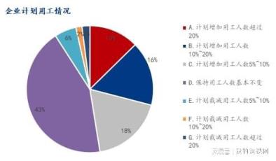 4、對于企業(yè)計劃用工情況,參與調(diào)研企業(yè)中47.45%企業(yè)計劃增加用工人數(shù),43.46%企業(yè)保持基本不變,9.09%的企業(yè)計劃裁減用工人數(shù)。
