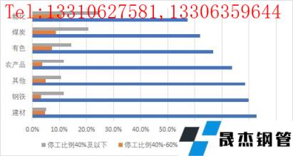 從不同行業(yè)的停工比例來看,鋼鐵、建材由于季節(jié)性生產(chǎn)和消費特征明顯,停工比例達到80%的企業(yè)數(shù)量明顯高于其他行業(yè),且較去年相比,鋼鐵、建材行業(yè)停工比例達到80%及以上企業(yè)數(shù)量占比分別提高3.4和5.9個百分點。