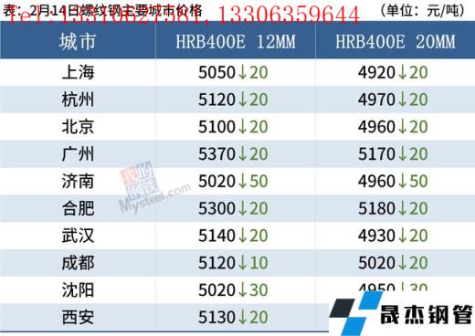建筑厚壁無縫鋼管:2月14日,全國31個主要城市20mm三級抗震螺紋鋼均價5010元/噸,較上個交易日下跌22元/噸。終端陸續開工,采購量較少,投機性需求寥寥無幾,全天成交表現較差。短期來看,受原料端拖累,期螺走弱,帶動市場避險情緒升溫,市場套現需求增加,不過整體需求偏弱。預計15日國內建筑厚壁無縫鋼管價格或將繼續趨弱為主。