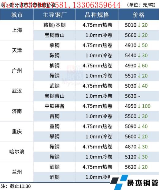 ◎樂從:15日早盤熱卷市場價格下跌60,4.75以上普柳燕4930-4940,2.75普4990-5140錳5120-5140。(單位:元/噸)