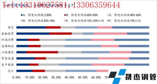 根據(jù)690余家企業(yè)反饋的限電比例情況,多數(shù)企業(yè)限電在20%-40%和10%-20%區(qū)間,占比分別為23.31%和22.30%,限電比例低于20%的企業(yè)約40%,而限電較為嚴重、比例超過60%的企業(yè)占20%水平。各行業(yè)限電比例分布差異不是特別大。