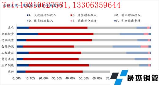 3、調(diào)研收集樣本概況:本次調(diào)研共收集到涉及鋼鐵行業(yè)有效反饋有3805份,涉及全國有30余省(直轄市、自治區(qū))、235個市(區(qū))。從類型來看,生產(chǎn)制造類959家,貿(mào)易流通類2043家,工程建筑類 229家,倉儲物流類105家,終端銷售類284家,金融投資類56家,其他類型129家。