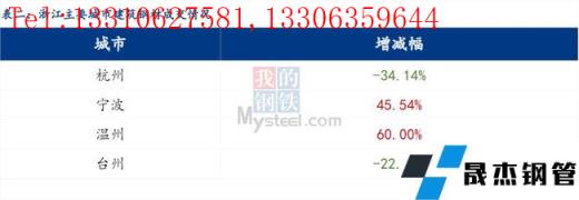 從浙江省今日價格來看,省內價格繼續下跌。其中杭州市場建筑厚壁無縫鋼管價格較昨日下跌60-90元/噸;寧波市場建筑厚壁無縫鋼管價格較昨日下跌30元/噸;溫州市場建筑厚壁無縫鋼管價格下跌20元/噸;臺州市場建筑厚壁無縫鋼管價格較昨日持平 。